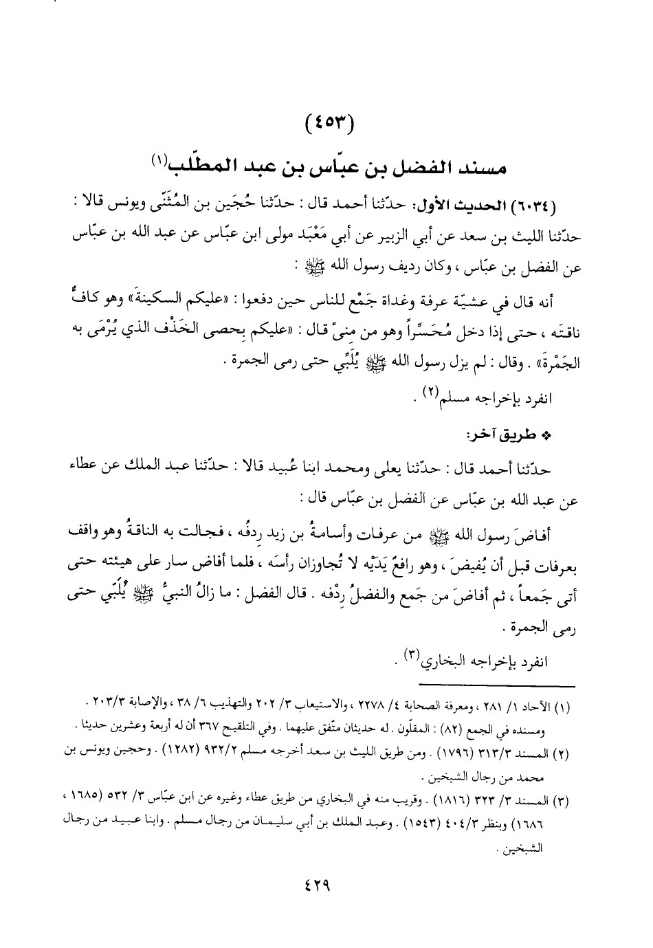 (٤٥٣) مسند الفضل بن عبّاس بن عبد المطّلب (١)