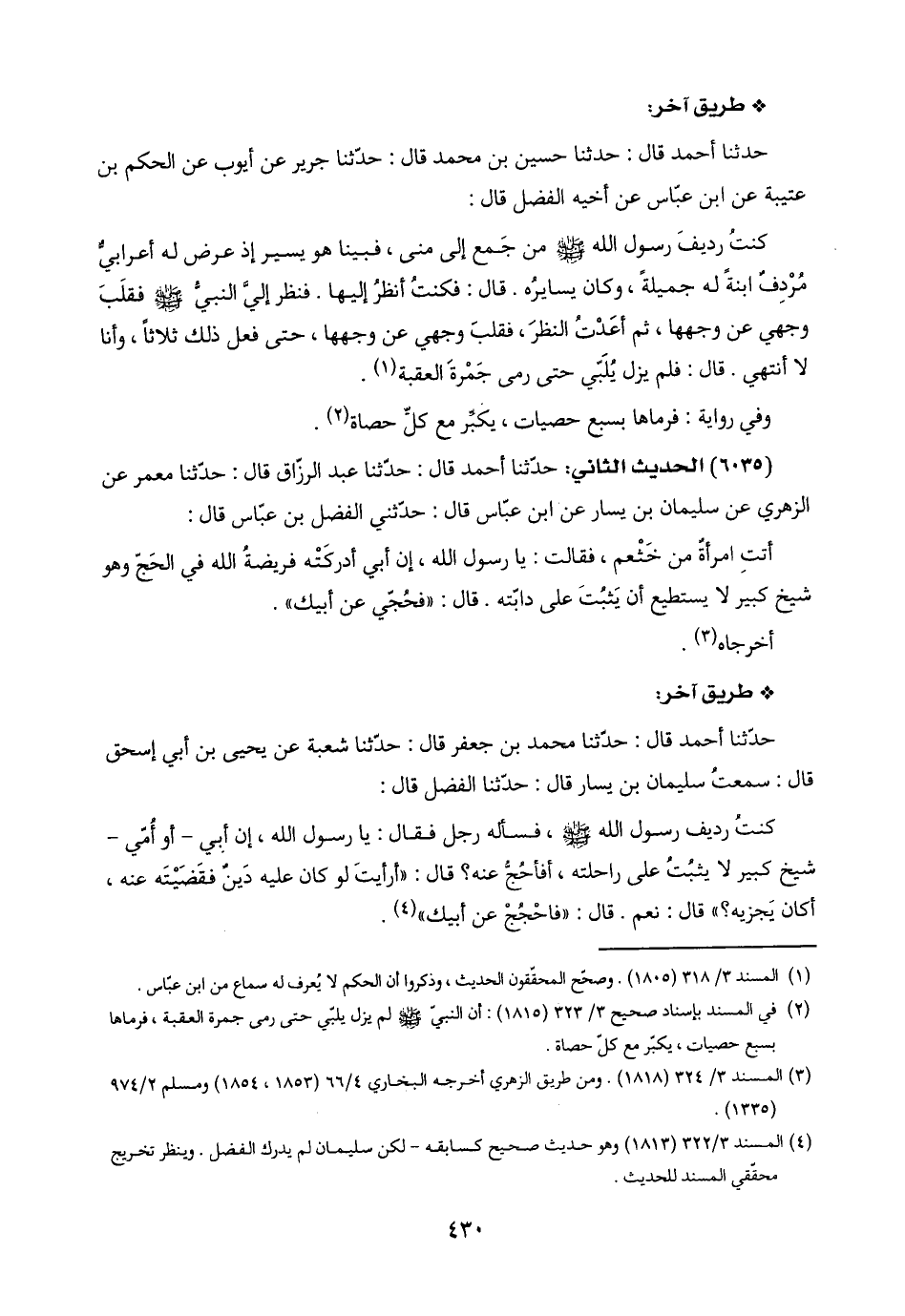 (٤) المسند ٣/ ٣٢٢ (١٨١٣) وهو حديث صحيح كسابقه - لكن سليمان لم يدرك الفضل. وينظر تخريج محقّقي المسند للحديث.