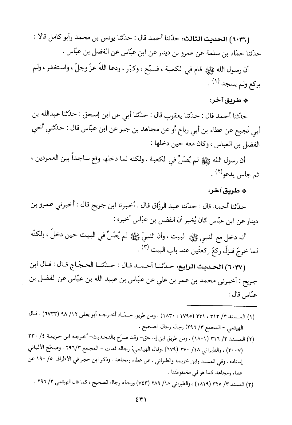 (٦٠٣٦) الحديث الثالث: حدّثنا أحمد قال: حدّثنا يونس بن محمد وأبو كامل قالا: حدّثنا حمّاد بن سلمة عن عمرو بن دينار عن ابن عبّاس عن الفضل بن عبّاس.
