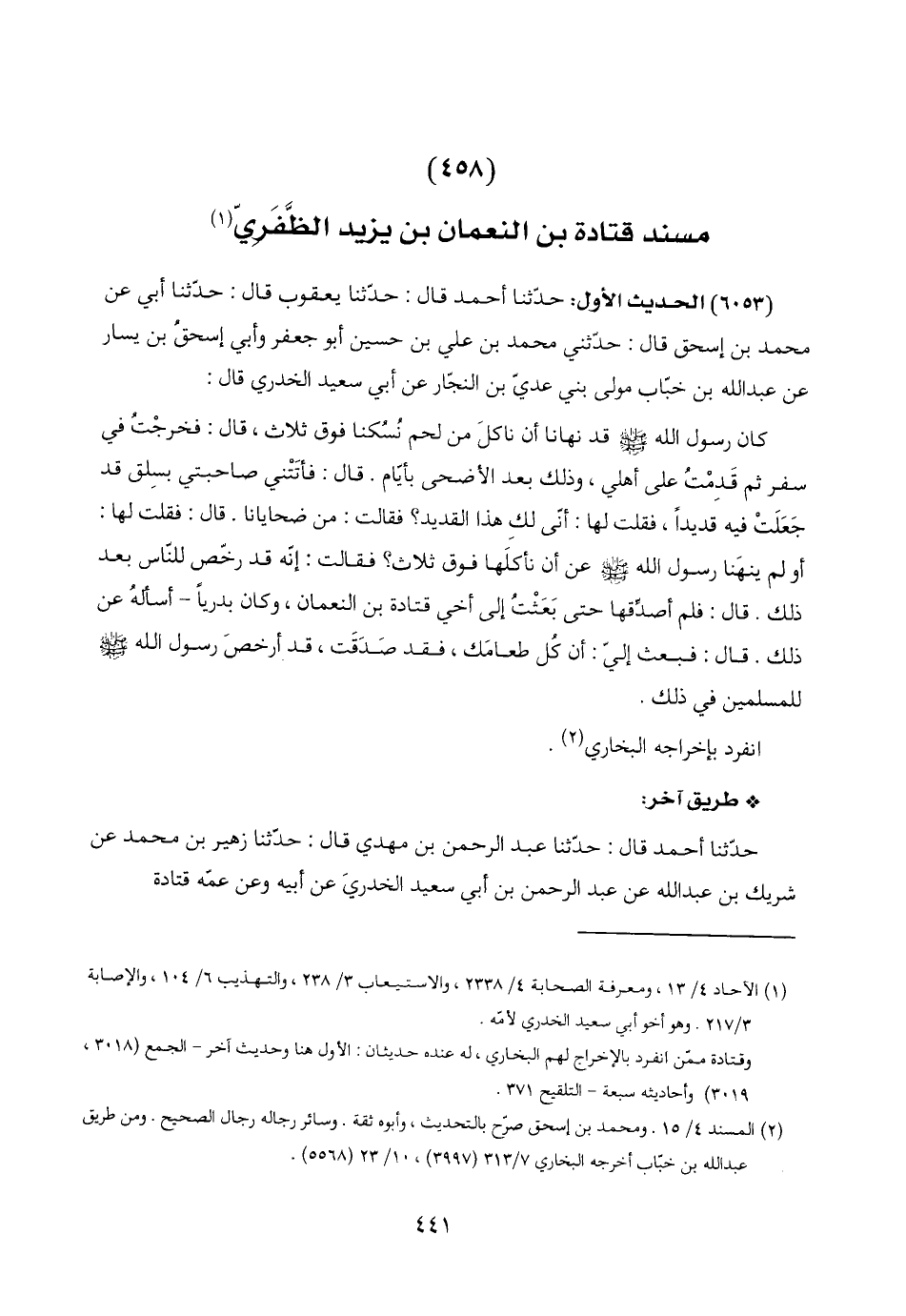 (٤٥٨) مسند قتادة بن النعمان بن يزيد الظَّفَرِيّ (١)