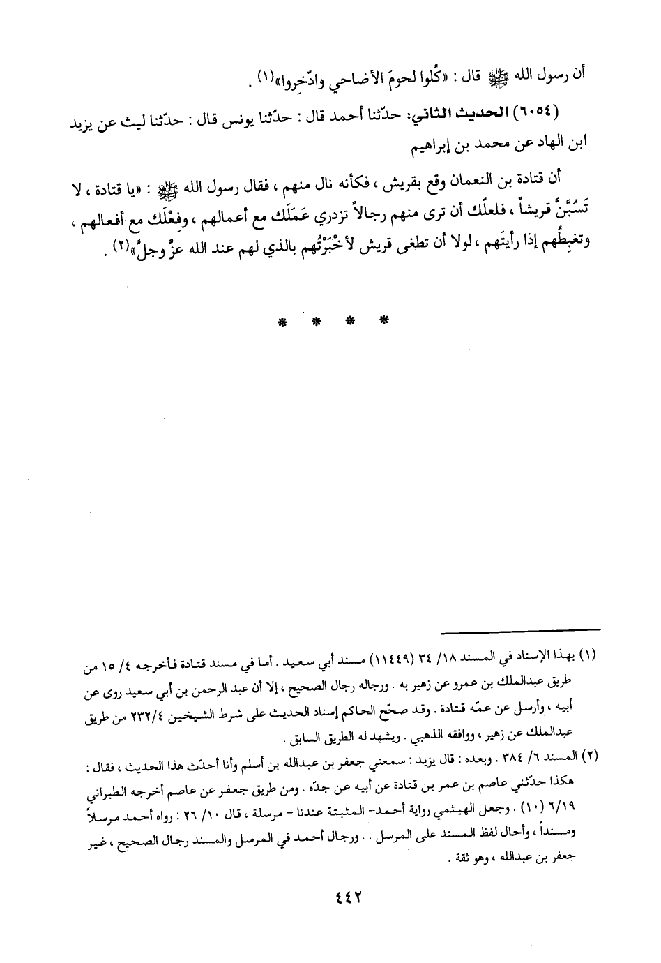(٦٠٥٤) الحديث الثاني: حدّثنا أحمد قال: حدّثنا يونس قال: حدّثنا ليث عن يزيد ابن الهاد عن محمد بن إبراهيم: