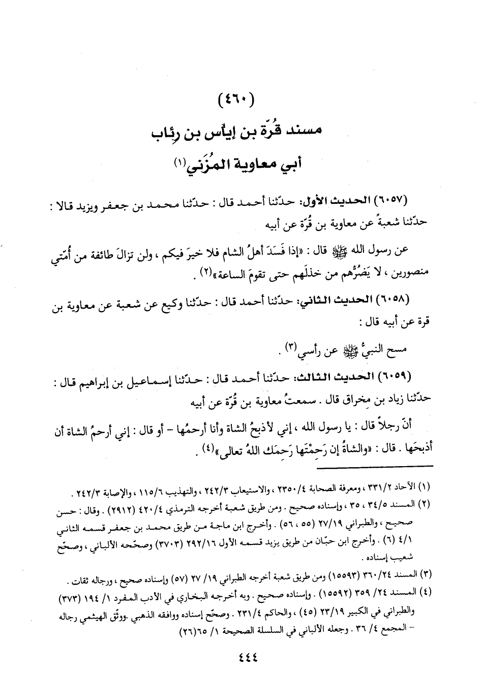 (٦٠٥٧) الحديث الأول: حدّثنا أحمد قال: حدّثنا محمد بن جعفر ويزيد قالا: حدّثنا شعبة عن معاوية بن قُرّة عن أبيه: