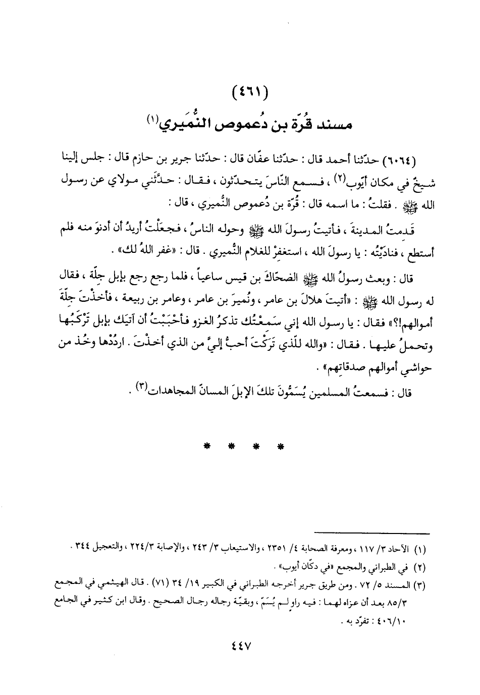 (٤٦١) مسند قُرّة بن دُعموص النُّمَيري (١)