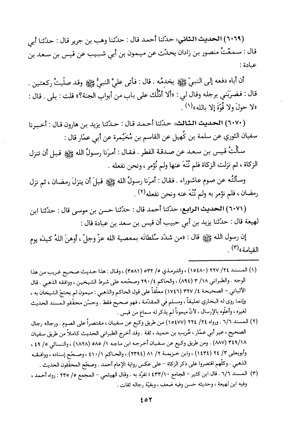 (٦٠٧١) الحديث الرابع: حدّثنا أحمد قال: حدّثنا حسن بن موسى قال: حدّثنا ابن لهيعة قال: حدّثنا يزيد بن أبي حبيب أن قيس بن سعد بن عبادة قال: