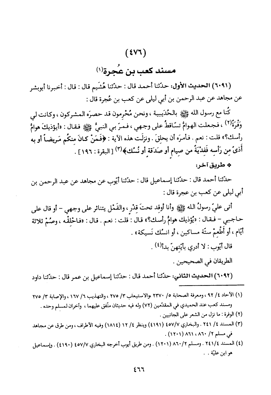 (٤٧٦) مسند كعب بن عُجرة (١)