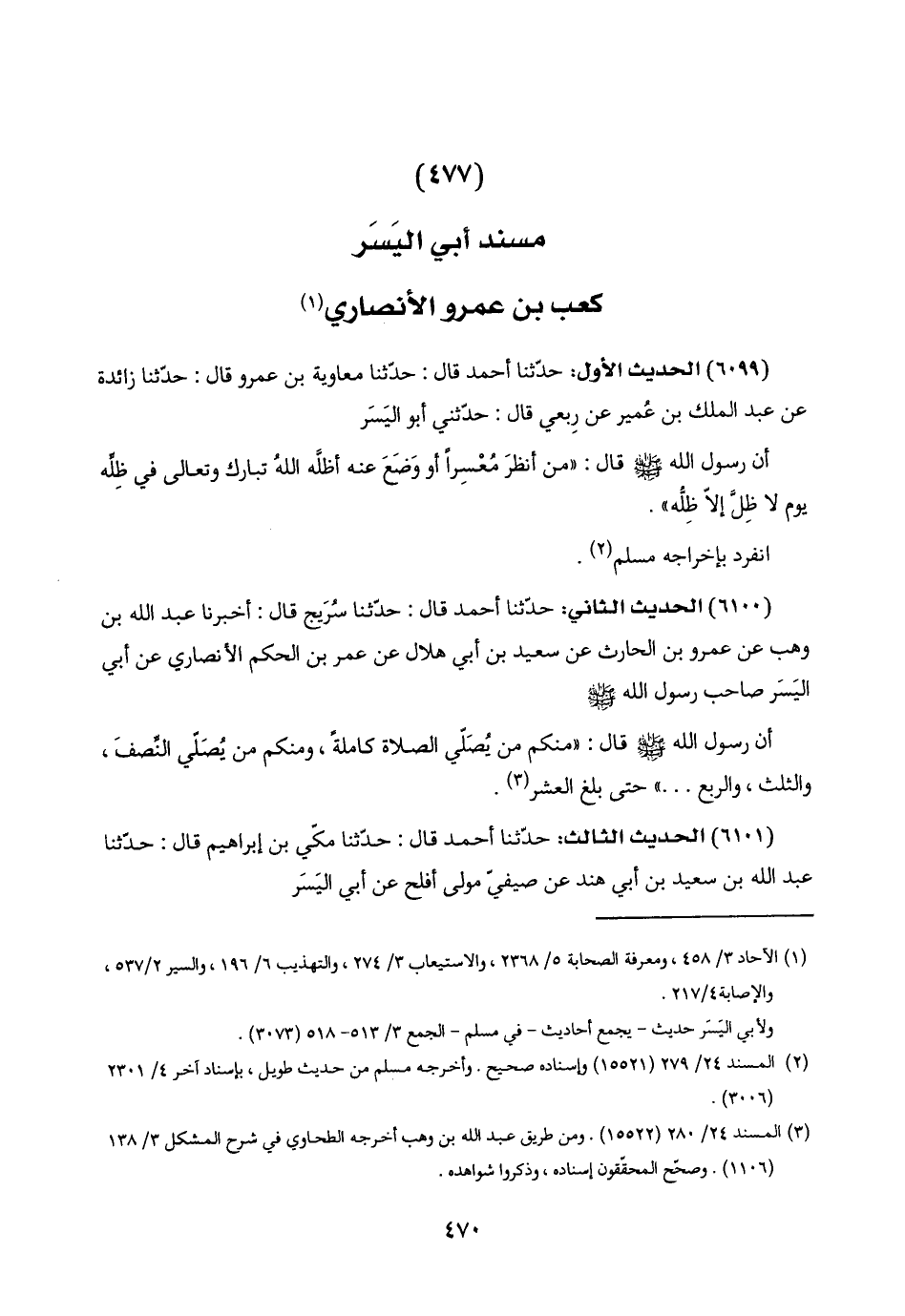 (٤٧٧) مسند أبي اليَسَر كعب بن عمرو الأنصاري (١)