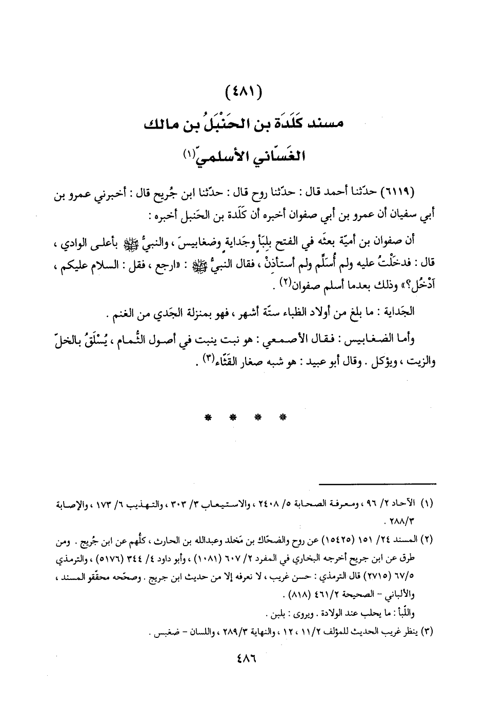 (٤٨١) مسند كَلَدَة بن الحَنْبَلُ بن مالك الغَسّاني الأسلميّ (١)