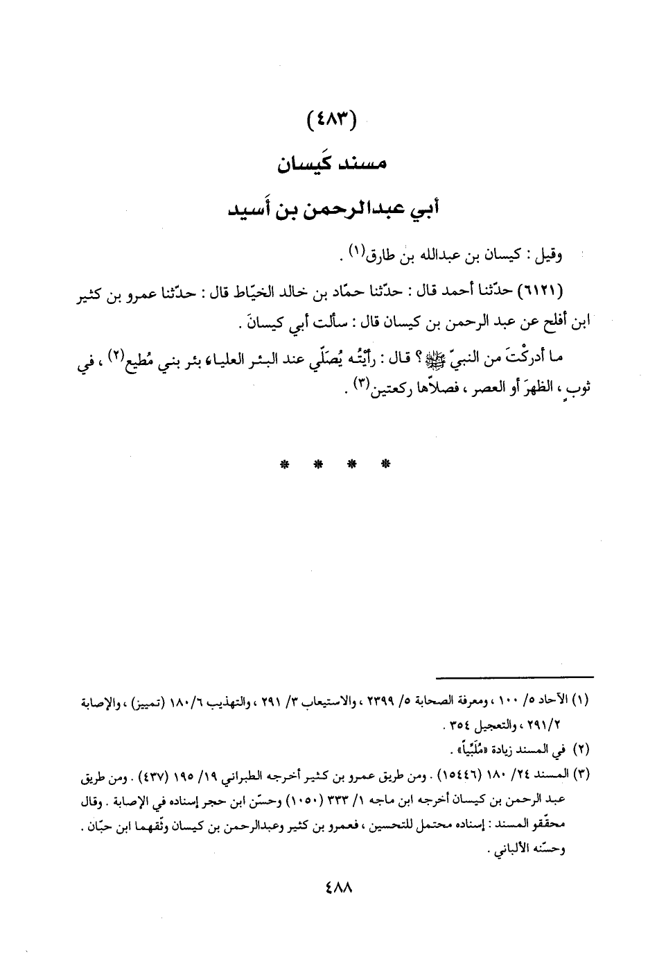 (٤٨٣) مسند كَيسان أبي عبد الرحمن بن أَسيد