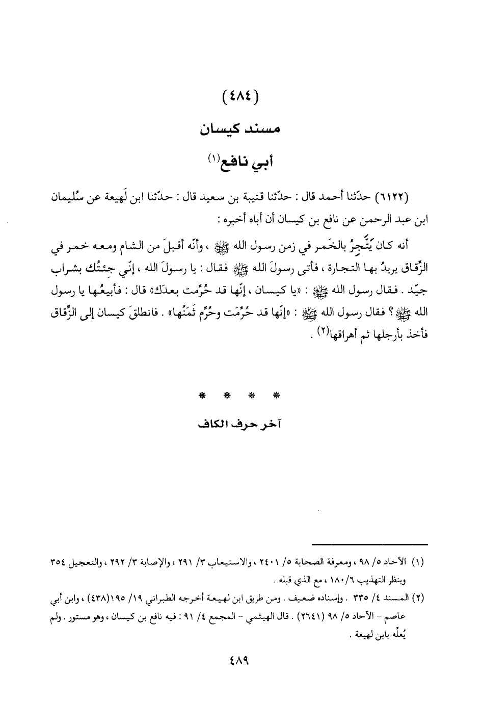 (٤٨٤) مسند كيسان أبي نافع (١)