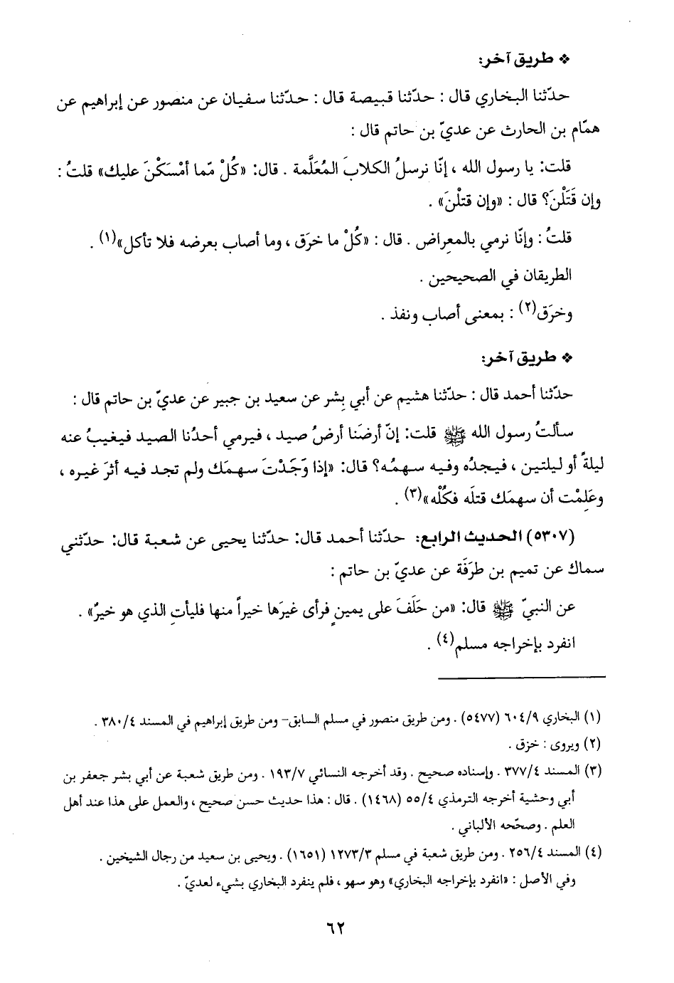 (٥٣٠٧) الحديث الرابع: حدّثنا أحمد قال: حدّثنا يحيى عن شعبة قال: حدّثني سماك عن تميم بن طرَفَة عن عديّ بن حاتم: