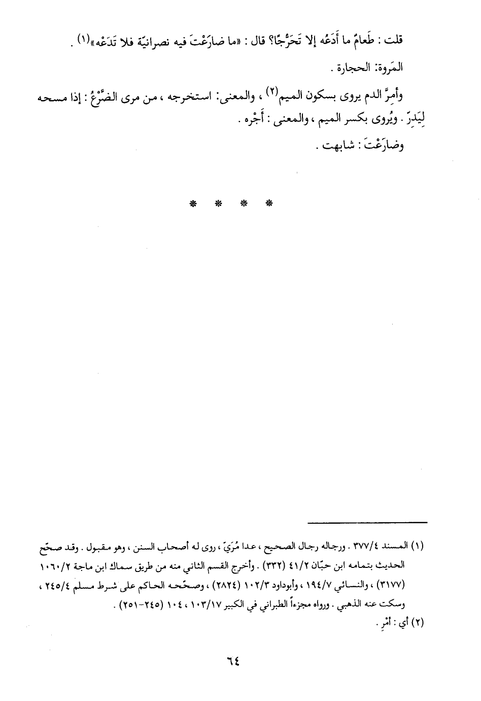 قلت: طَعامٌ ما أَدَعُه إلا تَحَرُّجًا؟ قال: "ما ضارَعْتَ فيه نصرانيّة فلا تَدَعْه" (١).