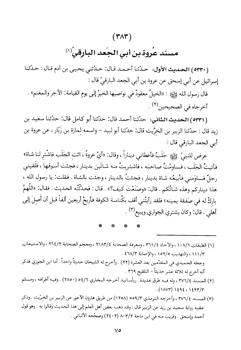 (٣٨٣) مسند عُروة بن أبي الجَعد البارِقيّ (١)