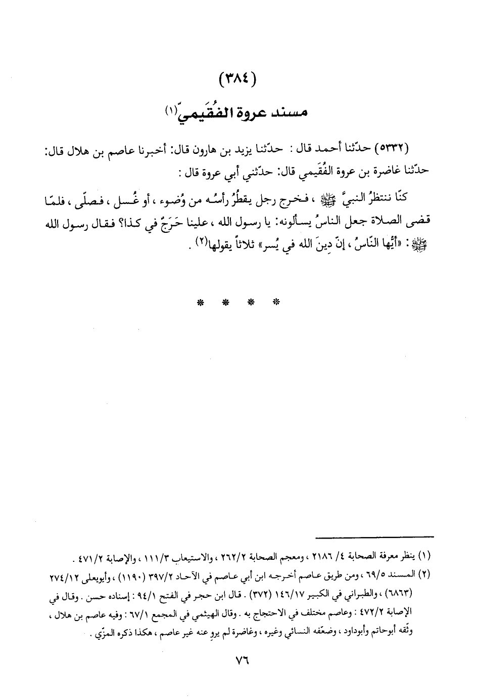 (٣٨٤) مسند عروة الفُقَيميّ (١)