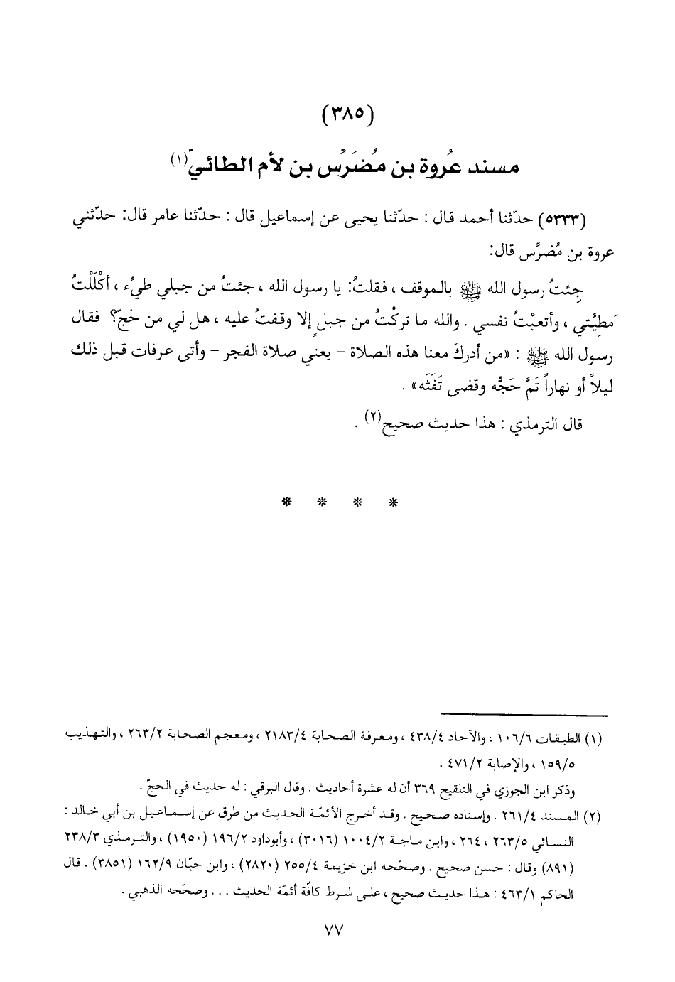 (٣٨٥) مسند عُروة بن مُضَرِّس بن لأم الطائيّ (١)