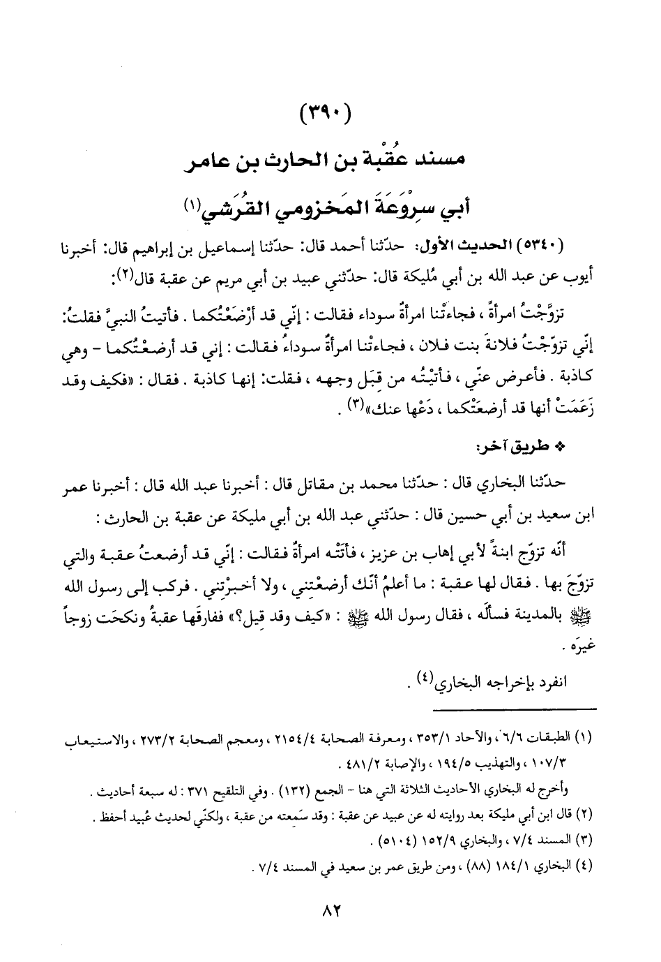 (٣٩٥) مسند عُقْبة بن الحارث بن عامر أبي سِرْوَعَةَ المَخزومي القُرَشي (١)