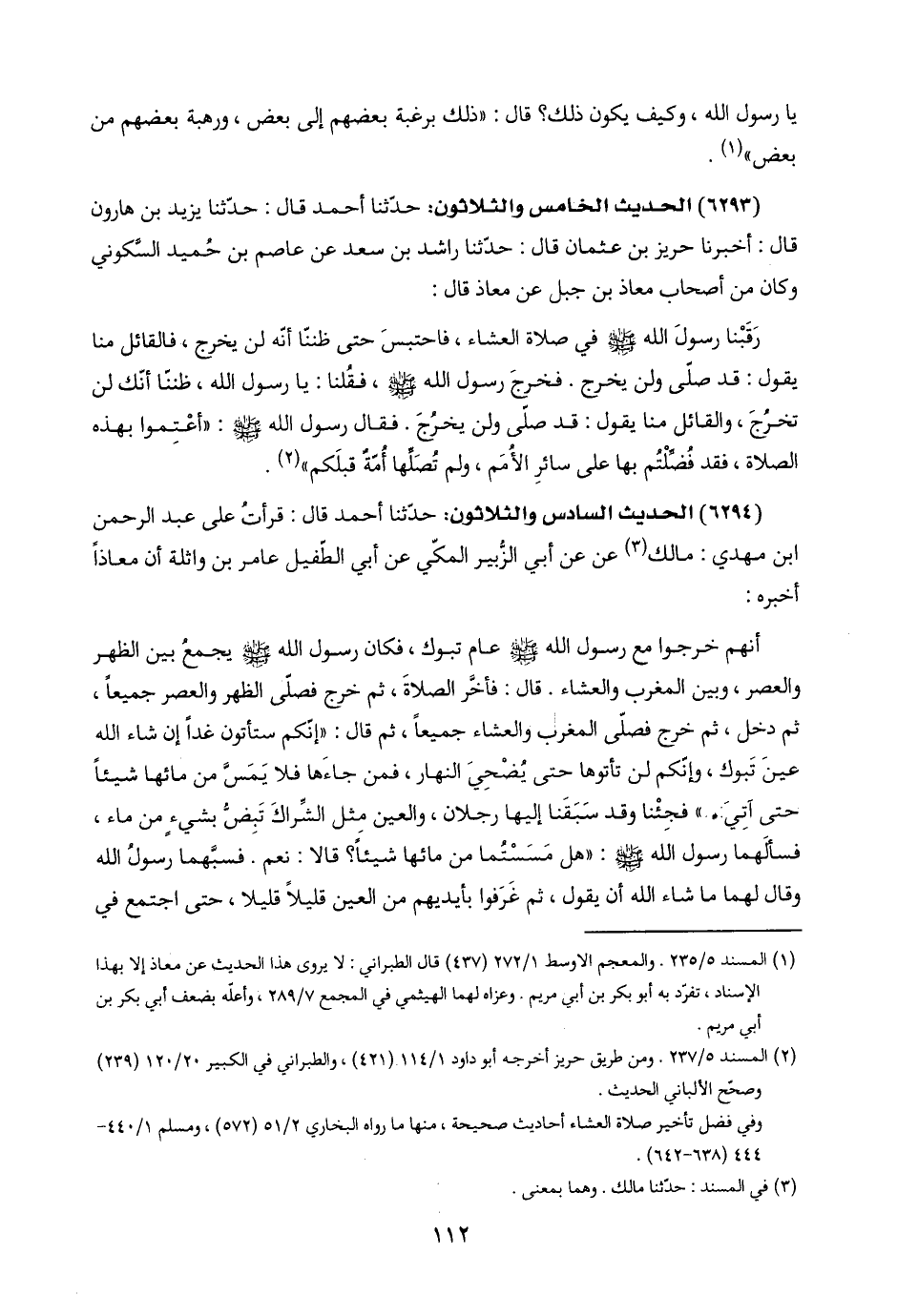 (٦٢٩٤) الحديث السادس والثلاثون: حدّثنا أحمد قال: قرأتُ على عبد الرحمن ابن مهدي: مالك (٣) عن عن أبي الزُّبير المكّي عن أبي الطّفيل عامر بن واثلة أن معاذًا أخبره: