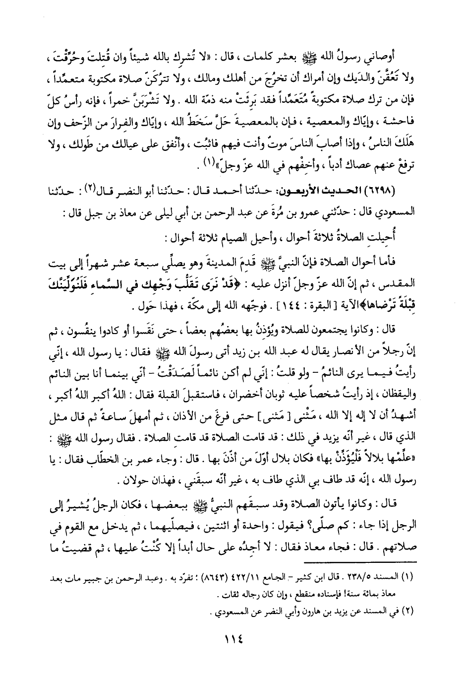 (٦٢٩٨) الحديث الأربعون: حدّثنا أحمد قال: حدّثنا أبو النضر قال (٢): حدّثنا المسعودي قال: حدّثني عمرو بن مُرّةَ عن عبد الرحمن بن أبي ليلى عن معاذ بن جبل قال:
