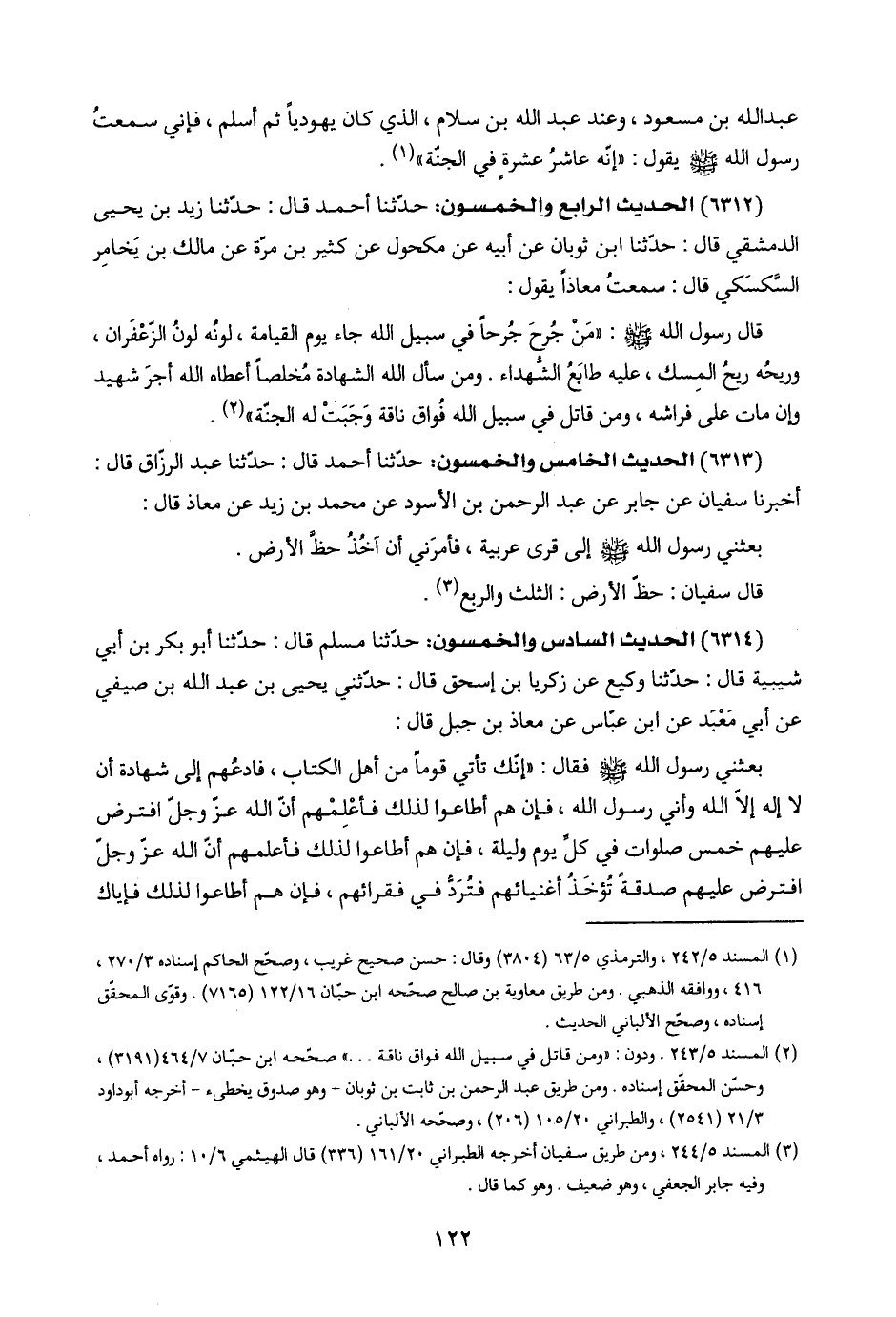 (٣) المسند ٥/ ٢٤٤، ومن طريق سفيان أخرجه الطبراني ٢٠/ ١٦١ (٣٣٦) قال الهيثمي ٦/ ١٠. رواه أحمد، وفيه جابر الجعفي، وهو ضعيف. وهو كما قال.