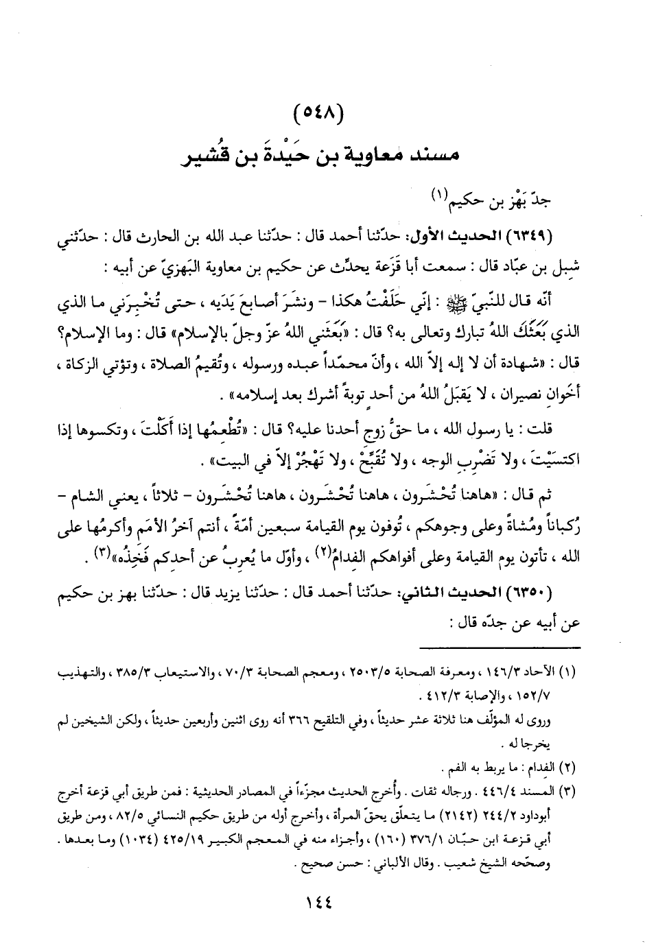 (٥٤٨) مسند معاوية بن حَيْدةَ بن قُشير