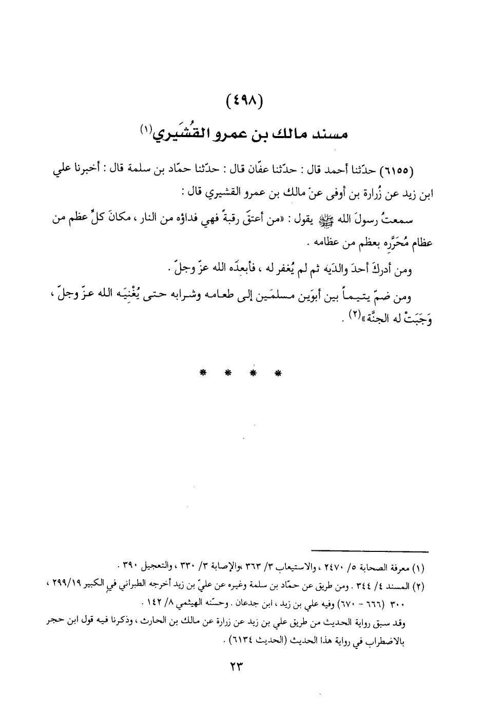 (٤٩٨) مسند مالك بن عمرو القُشَيري (١)