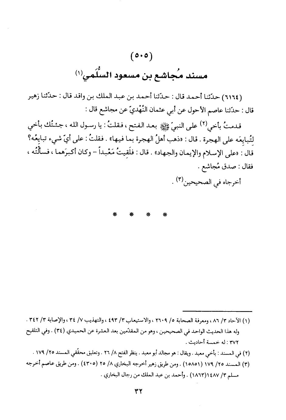 (٥٠٥) مسند مُجاشع بن مسعود السُّلَمي (١)