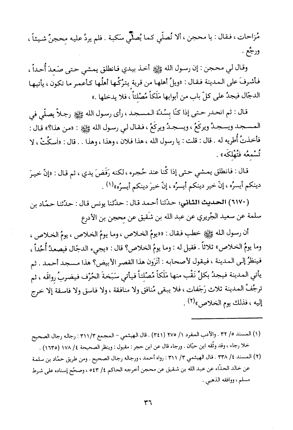 (٢) المسند ٤/ ٣٣٨. قال الهيثمي ٣/ ٣١١: رواه أحمد، ورجاله رجال الصحيح. ومن طريق حمّاد بن سلمة عن خالد الحذّاء عن عبد اللَّه بن شقيق عن محجن أخرجه الحاكم ٤/ ٥٤٣، وصحّح إسناده على شرط مسلم، ووافقه الذهبي.