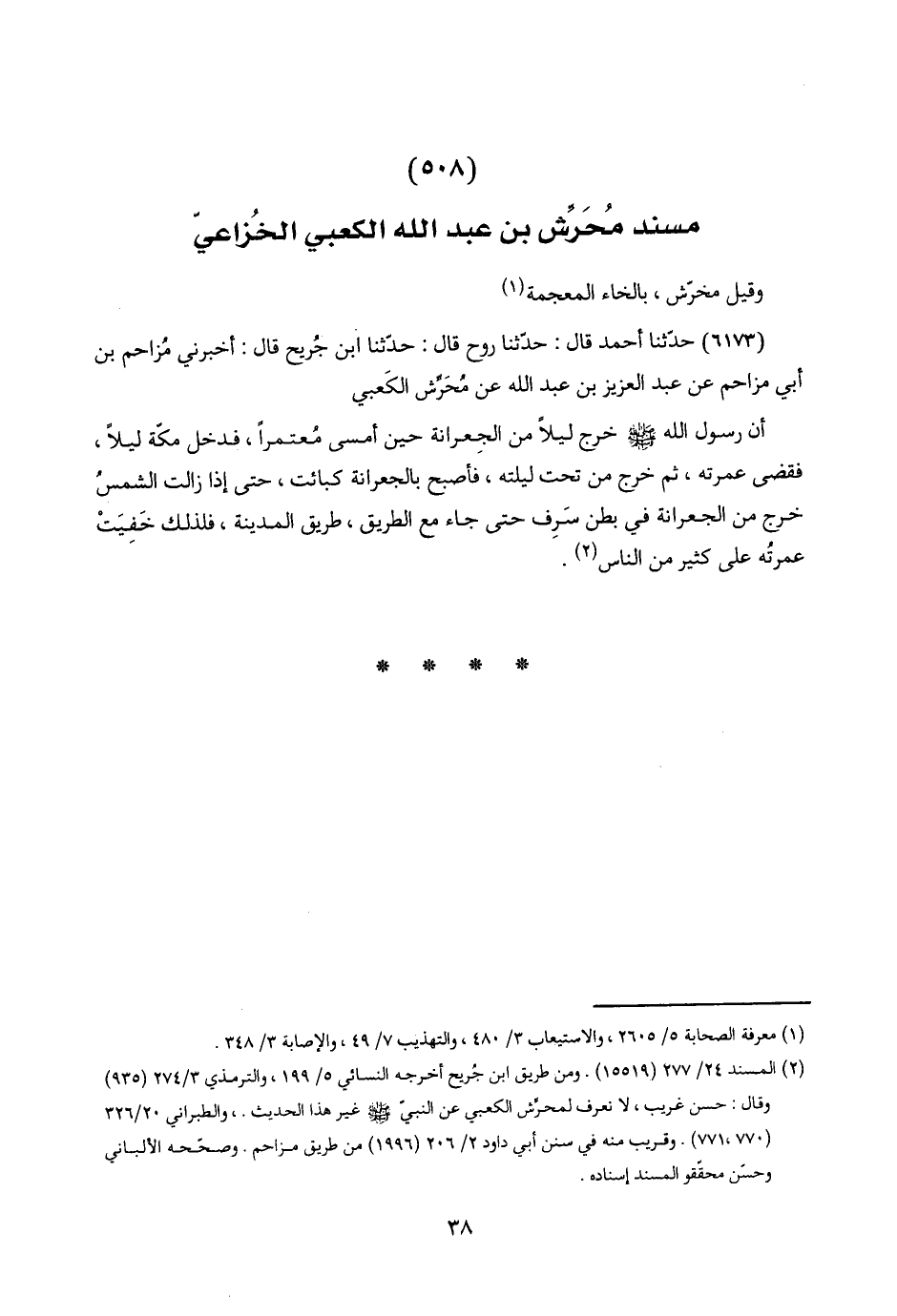 (٥٠٨) مسند مُحَرِّش بن عبد اللَّه الكعبي الخُزاعيّ
