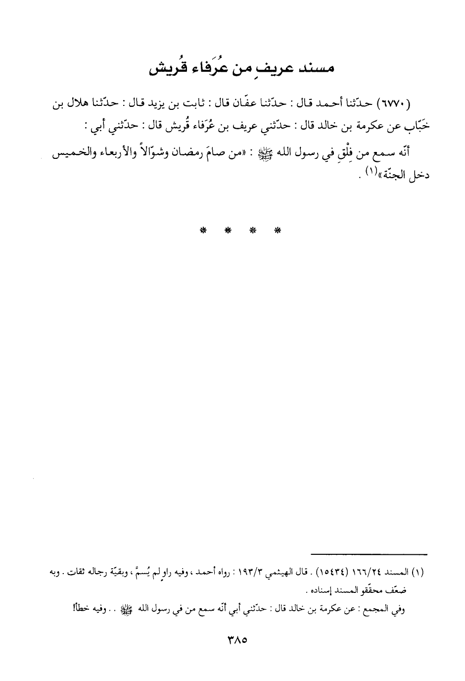 (١) المسند ٢٤/ ١٦٦ (١٥٤٣٤). قال الهيثمي ٣/ ١٩٣: رواه أحمد، وفيه راوٍ لم يُسمَّ، وبقيّة رجاله ثقات. وبه
