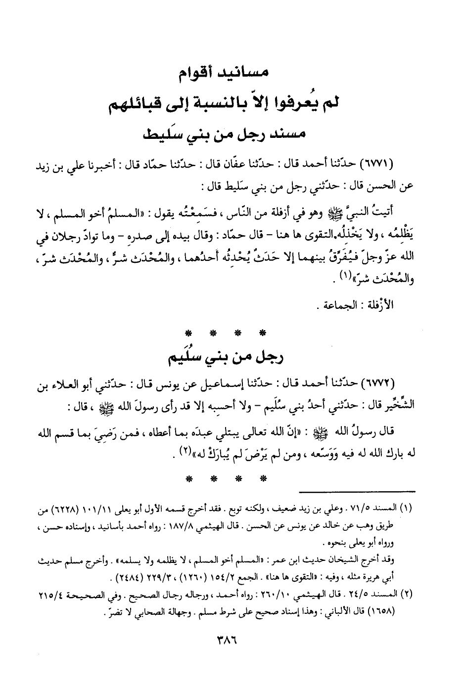 (٦٧٧١) حدّثنا أحمد قال: حدّثنا عفّان قال: حدّثنا حمّاد قال: أخبرنا علي بن زيد