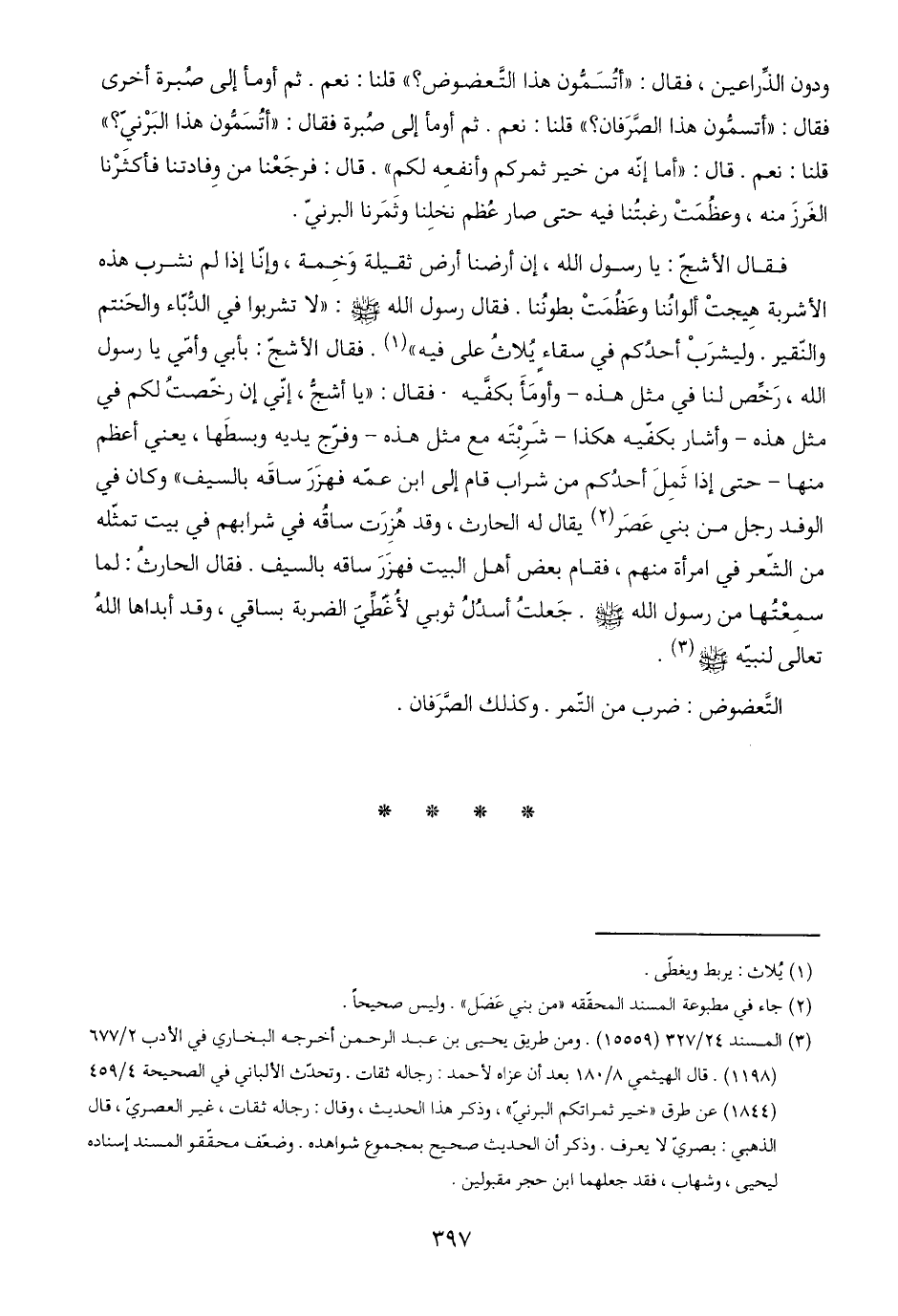 فقال الأشجّ: يا رسول الله، إن أرضنا أرض ثقيلة وَخِمة، وإنّا إذا لم نشرب هذه