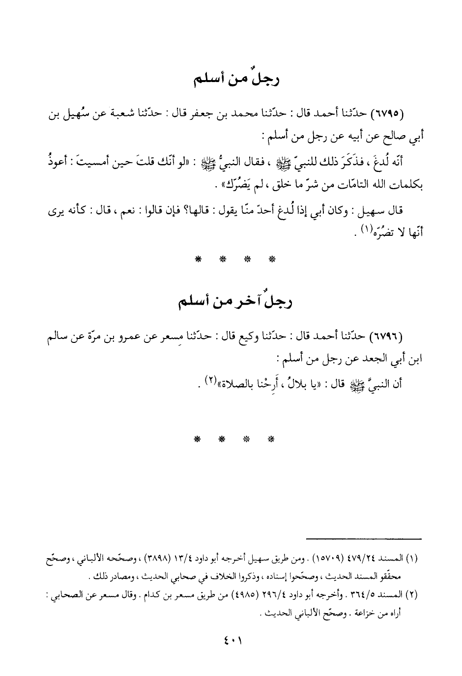 (١) المسند ٢٤/ ٤٧٩ (١٥٧٠٩). ومن طريق سهيل أخرجه أبو داود ٤/ ١٣ (٣٨٩٨)، وصحّحه الألباني، وصحّح
