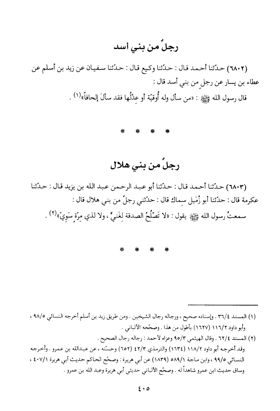(٦٨٠٢) حدّثنا أحمد قال: حدّثنا وكيع قال: حدّثنا سفيان عن زيد بن أسلم عن