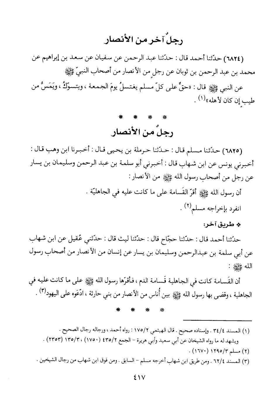 (٣) المسند ٤/ ٦٢. ومن طريق ابن شهاب أخرجه مسلم- السابق. ومن فوق ابن شهاب من رجال الشيخين.
