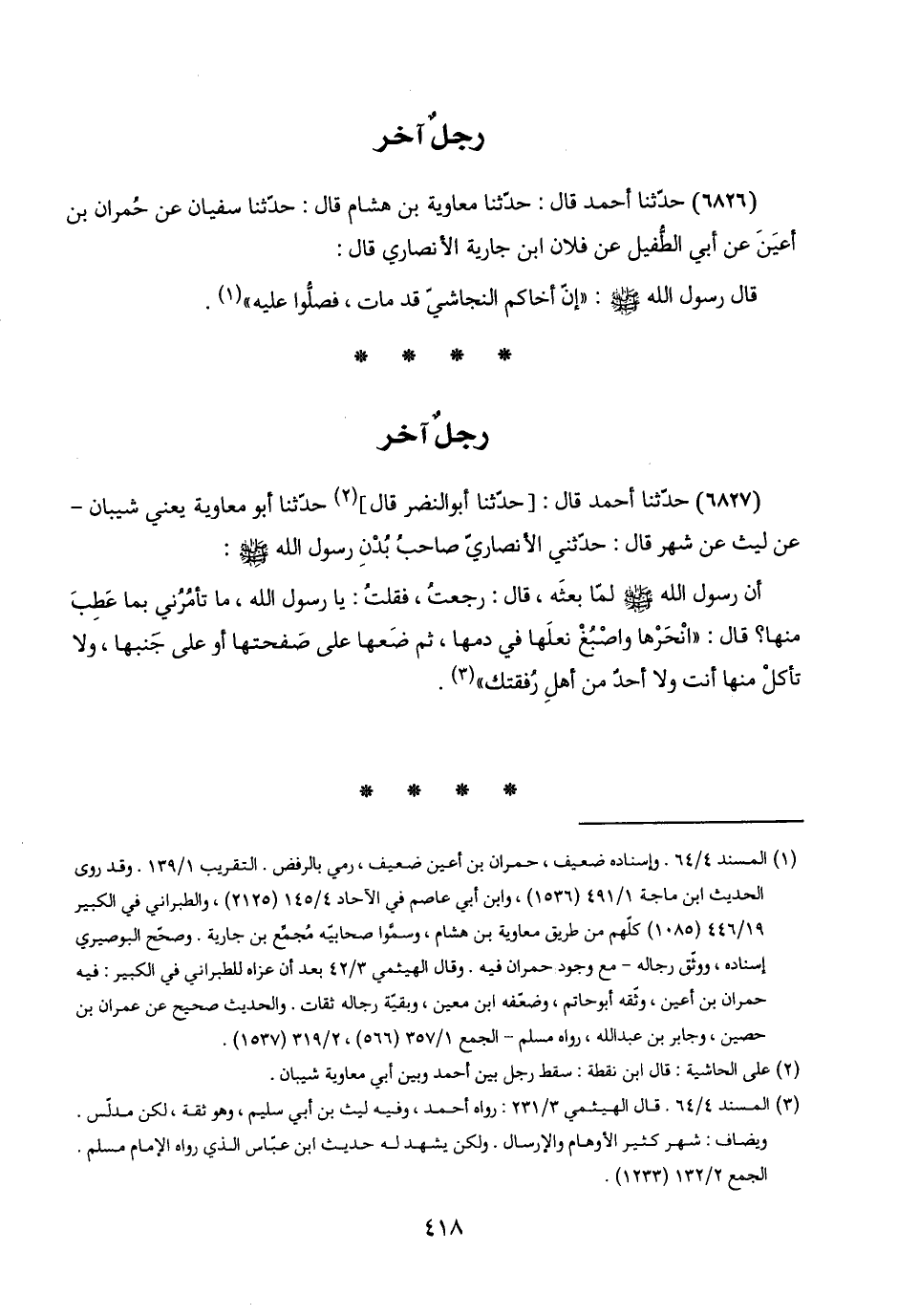 (٦٨٢٦) حدّثنا أحمد قال: حدّثنا معاوية بن هشام قال: حدّثنا سفيان عن حُمران بن