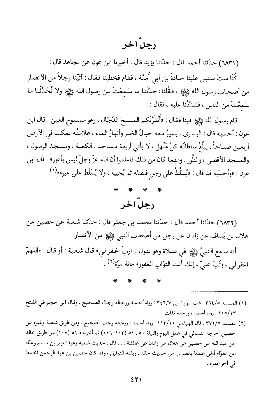 (٢) المسند ٥/ ٣٧١. قال الهيثمي ١٠/ ١١٣: رواه أحمد، ورجاله رجال الصحيح. ومن طريق شعبة وغيره عن