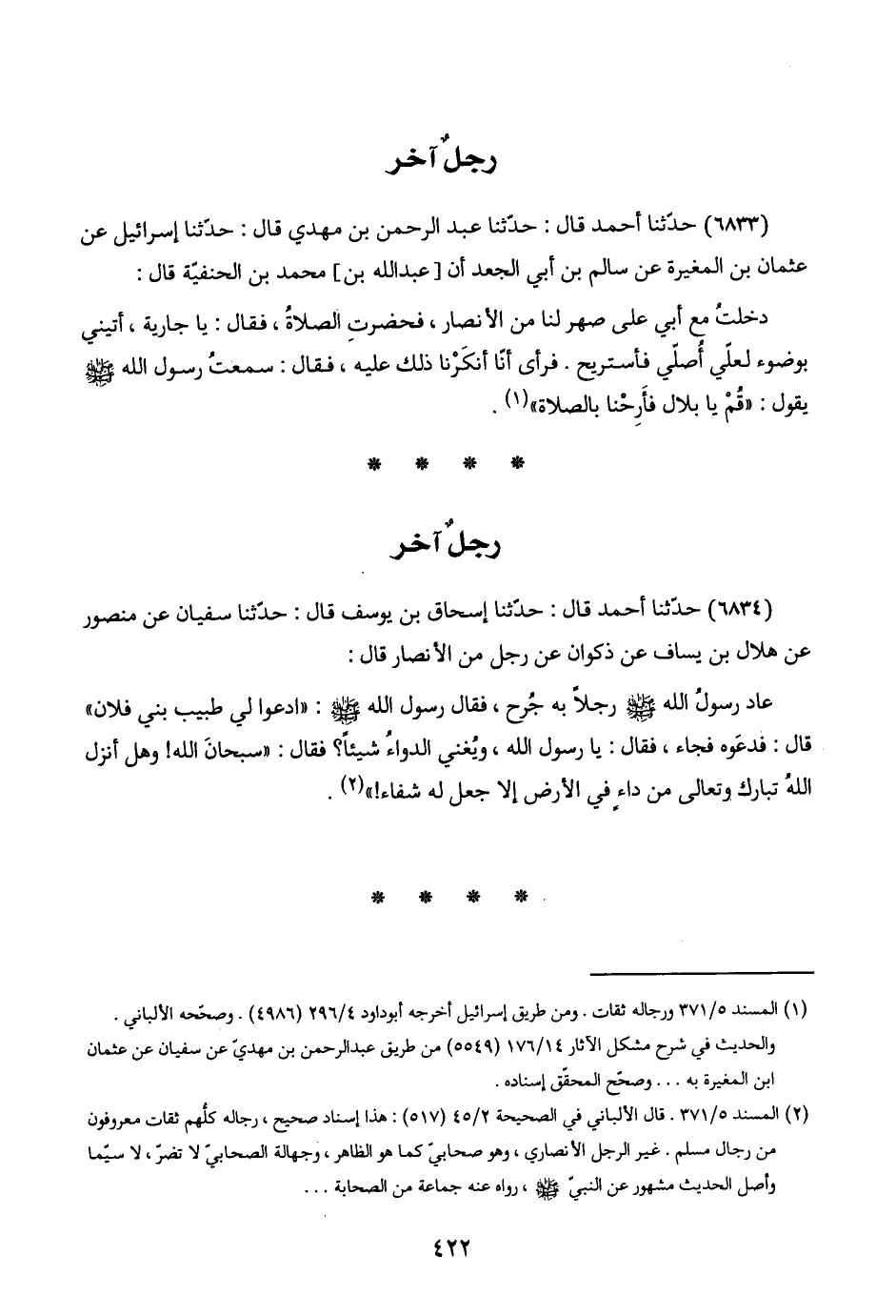 (١) المسند ٥/ ٣٧١ ورجاله ثقات. ومن طريق إسرائيل أخرجه أبو داود ٤/ ٢٩٦ (٤٩٨٦). وصحّحه الألباني.