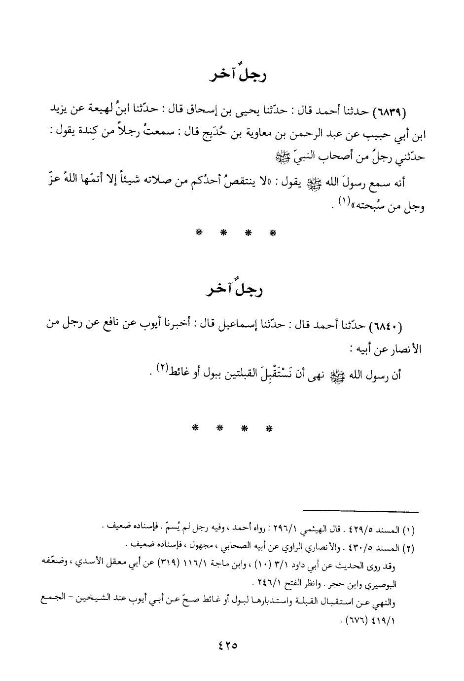 (١) المسند ٥/ ٤٢٩. قال الهيثمي ١/ ٢٩٦: رواه أحمد، وفيه رجلٌ لم يُسمّ. فإسناده ضعيف.