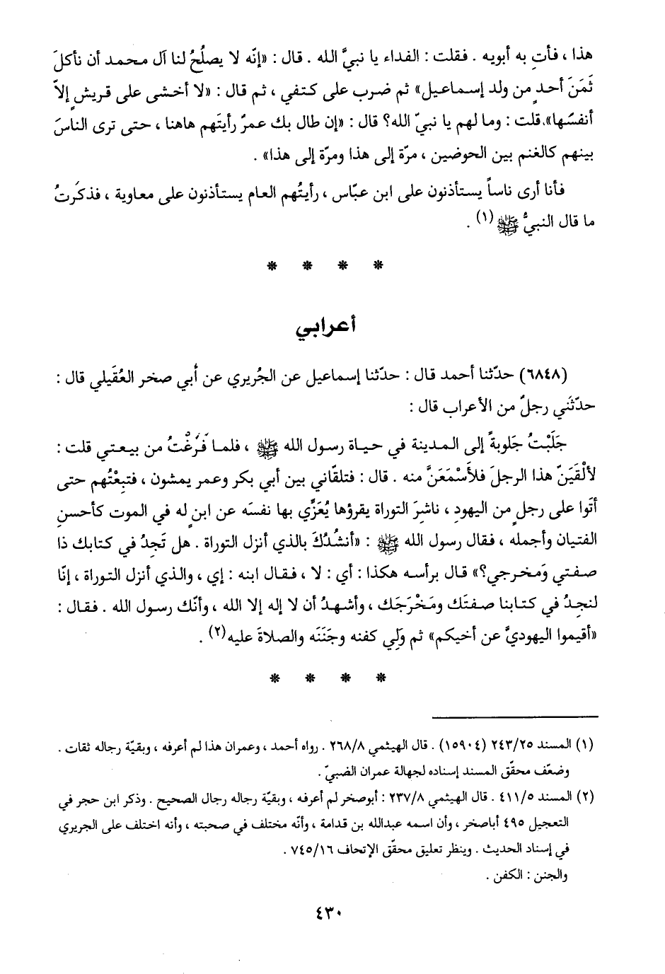 (١) المسند ٢٥/ ٢٤٣ (١٥٩٠٤). قال الهيثمي ٨/ ٢٦٨. رواه أحمد، وعمران هذا لم أعرفه، وبقيّة رجاله ثقات.