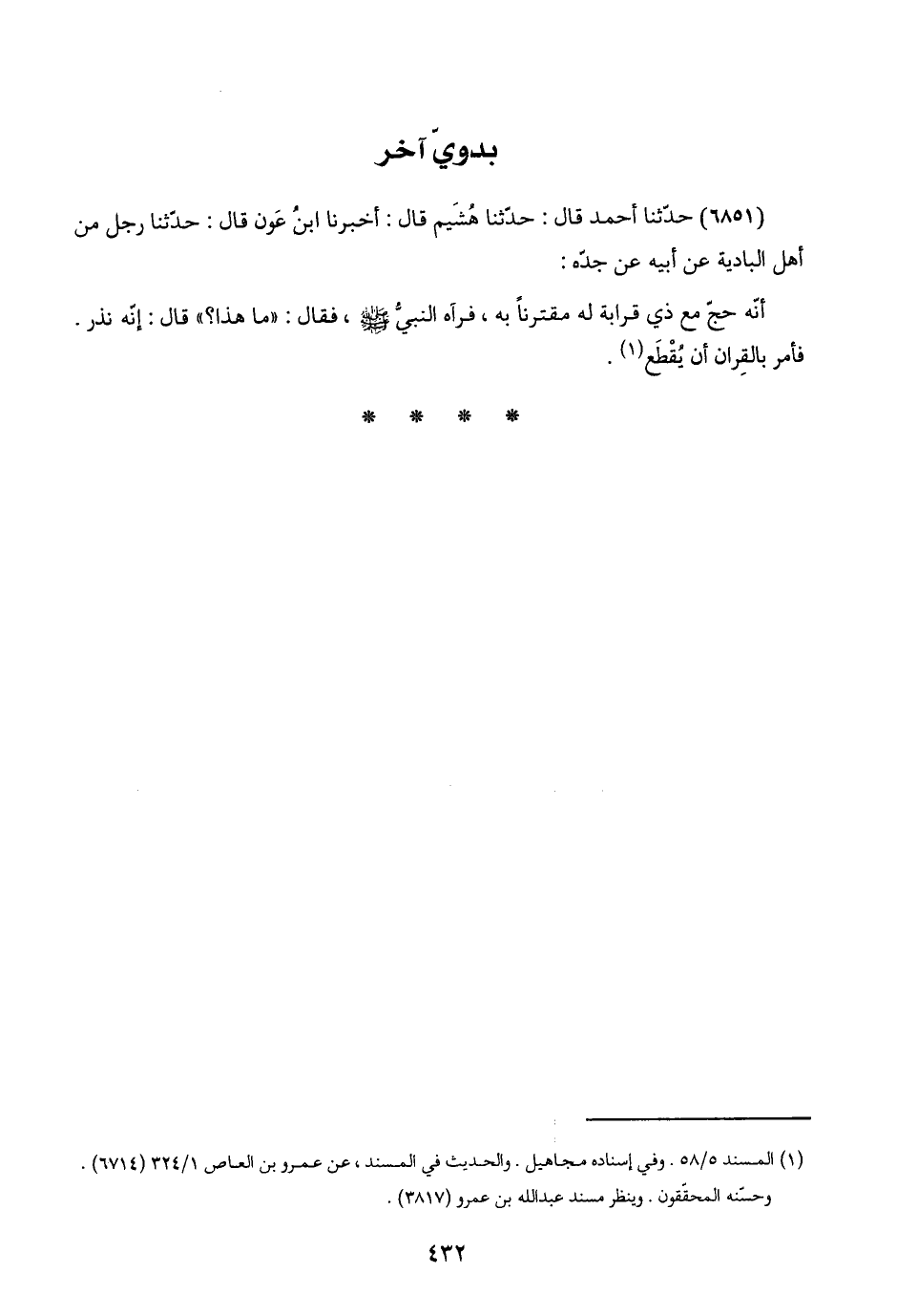 (٦٨٥١) حدّثنا أحمد قال: حدّثنا فشَيم قال: أخبرنا ابنُ عَون قال: حدّثنا رجل من