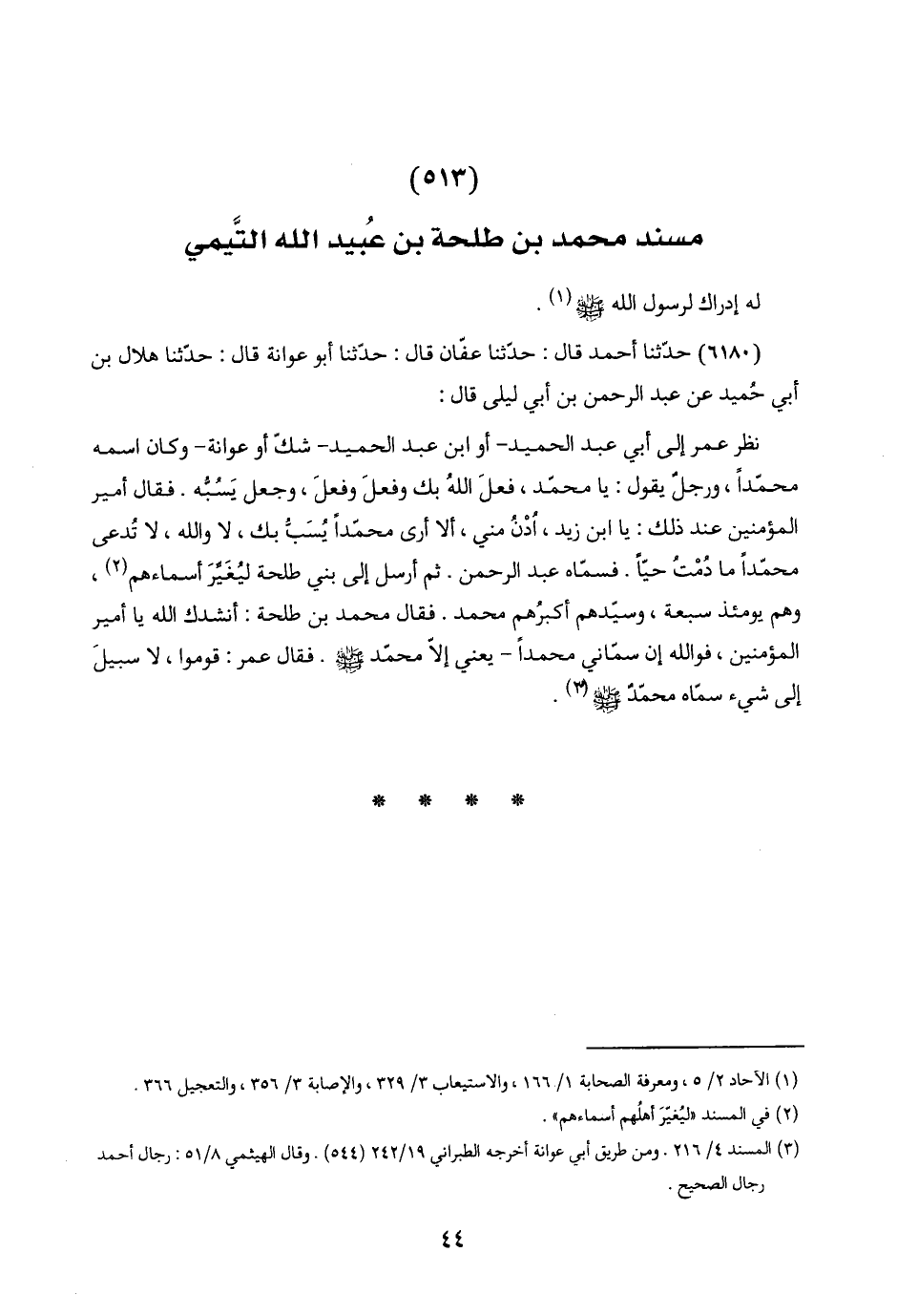 (٥١٣) مسند محمد بن طلحة بن عُبيد اللَّه التَّيمي