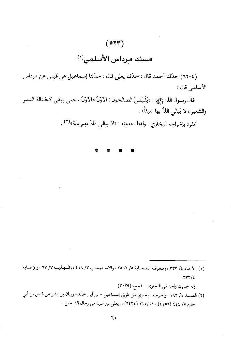 (٥٢٣) مسند مِرداس الإسلمي (١)