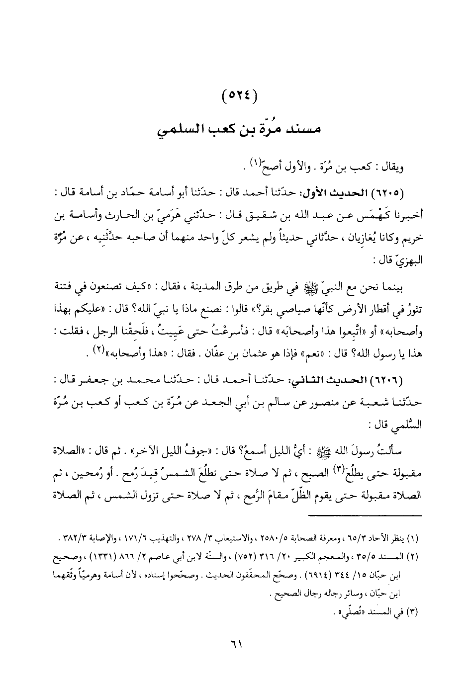 (٥٢٤) مسند مُرّة بن كعب السلمي