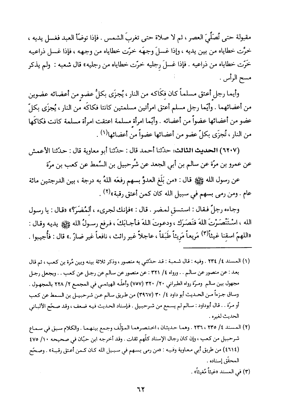 (٦٢٠٧) الحديث الثالث: حدّثنا أحمد قال: حدّثنا أبو معاوية قال: حدّثنا الأعمش عن عمرو بن مرّة عن سالم بن أبي الجعد عن شُرحبيل بن السِّمط عن كعب بن مرّة: