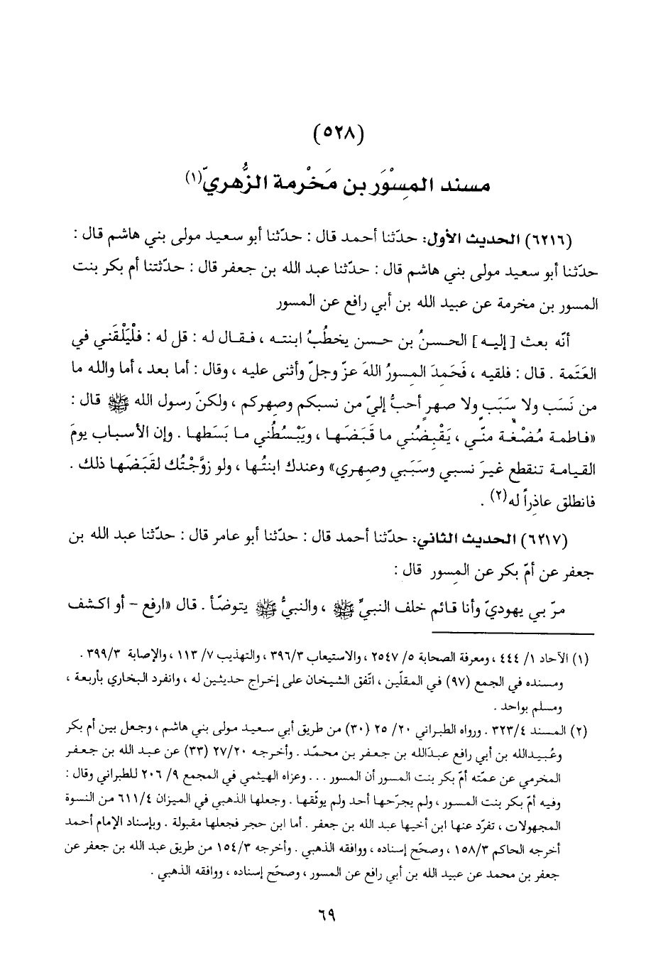 (٥٢٨) مسند المِسْوَر بن مَخْرمة الزُّهريّ (١)
