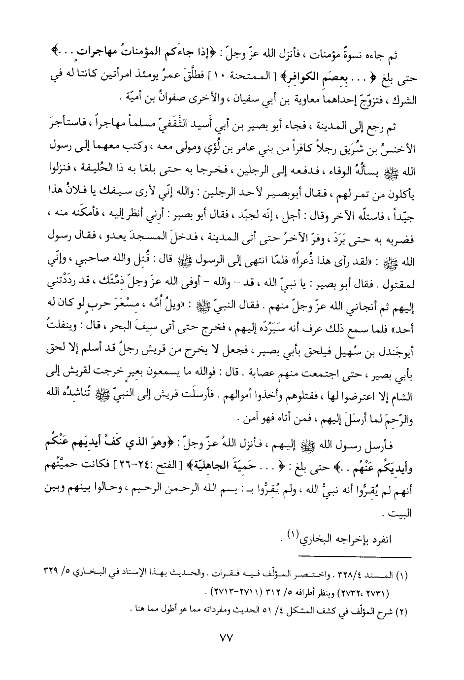 (١) المسند ٤/ ٣٢٨. واختصر المؤلّف فيه فقرات. والحديث بهذا الإسناد في البخاري ٥/ ٣٢٩ (٢٧٣١، ٢٧٣٢) وينظر أطرافه ٥/ ٣١٢ (٢٧١١ - ٢٧١٣).