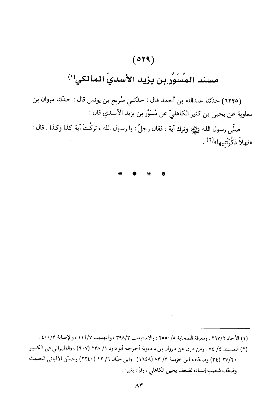 (٥٢٩) مسند المُسَوَّر بن يزيد الأسديّ المالكي (١)