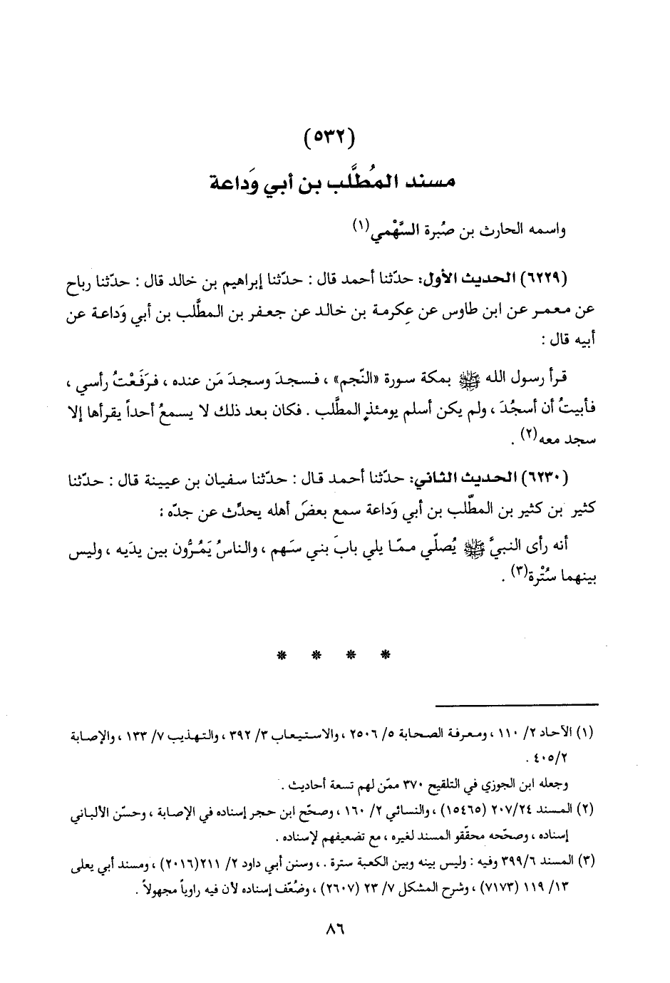 (٥٣٢) مسند المُطَّلب بن أبي وَداعة