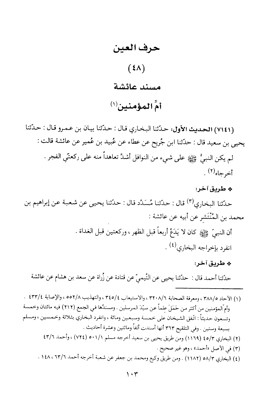 حَدَّثَنَا البخاري (٣) قال: حَدَّثَنَا مُسدَّد قال: حَدَّثَنَا يحيى عن شعبة عن إبراهيم بن