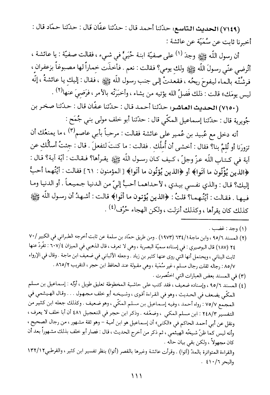(٧١٤٩) الحديث التاسع: حدّثنا أحمد قال: حدّثنا عفّان قال: حدّثنا حمّاد قال: