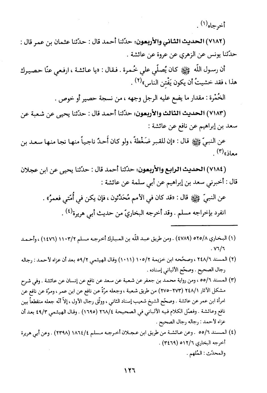 امرأة ابن عمر عن عائشة. وصحّح الشيخ شعيب إسناد الثاني، ووثّق رجال الأول، إلّا أنّه جعله منقطعًا بين